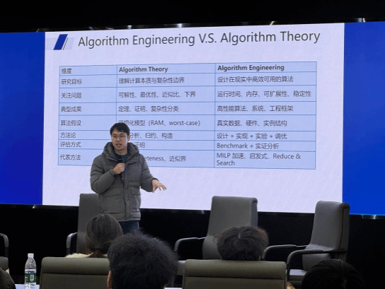 沙龙现场,三位嘉宾结合自身深耕领域的实践经验,带来了干货满满的分享。电子科技大学周毅副教授聚焦算法工程领域,深入浅出地解析了理论算法与工程实践的衔接要点,强调算法工程“易入门、重实践、高产出”的特点,并分享了通过国际算法竞赛积累经验、快速产出高水平论文的实用路径。他以团队在国际赛事中优化算法、斩获佳绩的案例,鼓励师生立足实际问题开展研究,通过持续打磨代码与成果,实现从“入门”到“精通”的跨越。