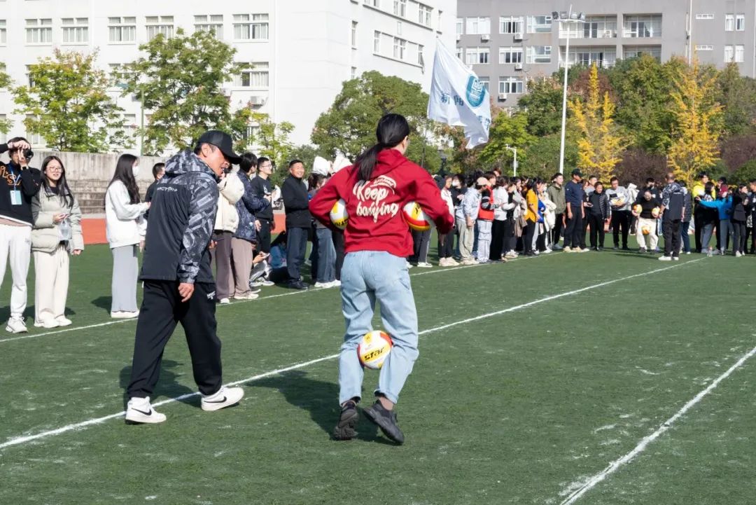 本次运动会不仅是学生的运动会,还特意设置了教职工组,让全体教师也参与其中,尽情享受运动的快乐。参赛老师们斗志昂扬,奋勇争先,场下观战教师出谋划策,同学们也为老师们加油助威,加油声、欢笑声不绝于耳。