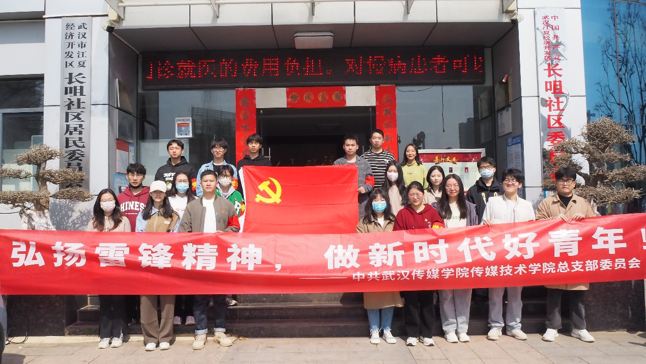 “向雷锋学习·志愿正青春”,2023年3月5日,我院学生科组织志愿者于武汉市长咀社区开展志愿服务活动,参与活动人员有团委书记张坤老师、党总支部组织委员田琳琳老师、青年志愿者协会部分成员和学生支部全体党员。本次活动不仅清理美化了环境,更是对“雷锋精神”的传承,传媒技术学院志愿者们的行为赢得了附近居民和社区干部的一致认可。